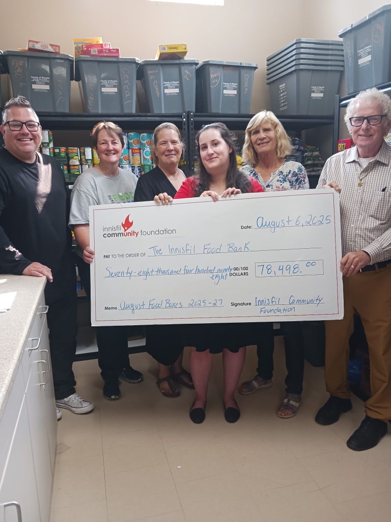 Innisfil, ON – The Innisfil Community Foundation has awarded a three-year grant totaling $78,498 to the Innisfil Food Bank. This critical funding will provide targeted support to families during one of the most financially challenging times of year, August, as children prepare to return to school and household expenses rise.